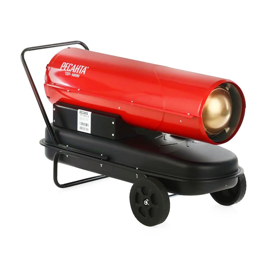 Дизельная тепловая пушка РЕСАНТА ТДП-50000 - функциональный обогреватель с прямым нагревом для отопления складских, строительных и других помещений.Особенности: