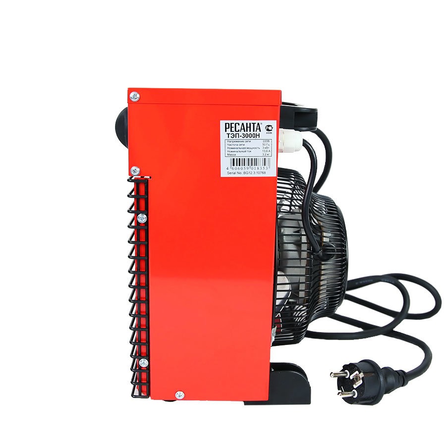 Тепловая электрическая пушка РЕСАНТА ТЭП-3000Н предназначена для вентиляции и обогрева жилых и производственных помещений, складов, гаражей, а также для обогрева и сушки в строительстве.Прибор относится к тепловым пушкам компактного типа. Нагревательный элемент - трубчатый. Данная модель рассчитана на питание от электросети переменного тока частотой 50 Гц, номинальным напряжением 220-230В (однофазная). Устанавливается на полу.