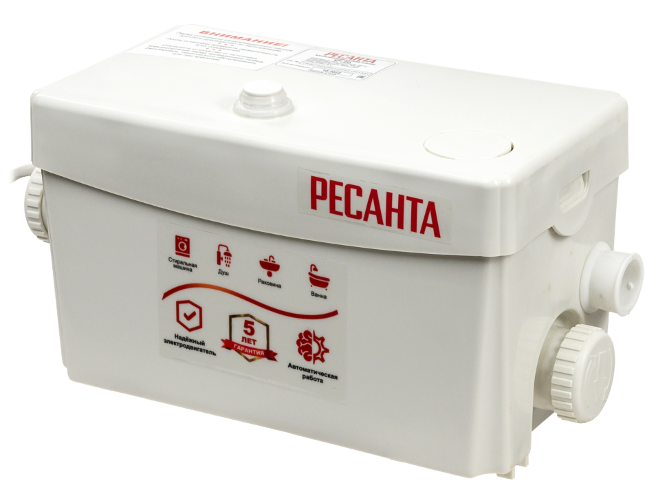 Устройство обеспечит откачку сточных вод под напором и вывод их в канализацию. Корпус имеет 3 входа, которые можно подключить к раковине или душу, данный насос не имеет выход под туалет. Как только использованная вода поступает в герметичный резервуар из прочного пластика, срабатывает реле включения. Электрический двигатель мощностью 300 Вт обеспечивает работу насосного механизма, который приступает к откачке жидкости со скоростью 100 л/мин. После опорожнения резервуара до минимального уровня реле самостоятельно отключает систему. Включать и выключать канализационный насос каждый раз не нужно, его работа регулируется за счет реле.