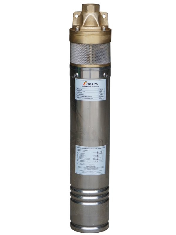 Скважинный насос ВИХРЬ СН-100 предназначен для подачи воды с большой глубины: из шахтных колодцев, резервуаров и открытых водоёмов для полива садов и огородов. Корпус насоса из нержавеющей стали, стойкий к коррозии и улучшает теплообмен между двигателем и водой, т.е. происходит эффективный процесс охлаждения двигателя.Модель СН-100 относится к группе погружных насосов. Как уже понятно из названия, в отличие от насосов поверхностного типа они размещены в воде, которую необходимо перекачивать. Обычно погружные насосы применяют в тех случаях, когда источник воды находится на большой глубине (больше девяти метров), так как поверхностные насосы в таких случаях не работают.