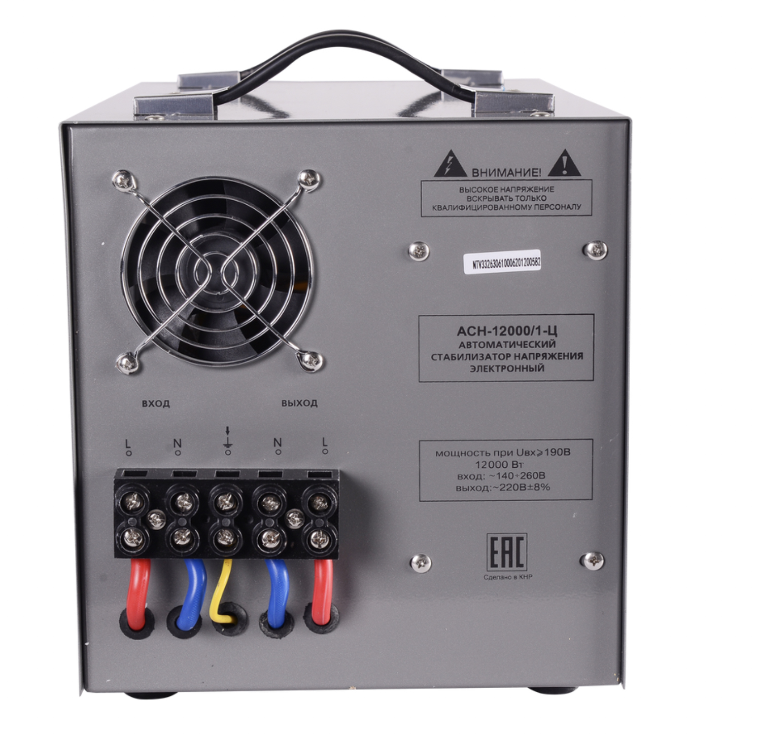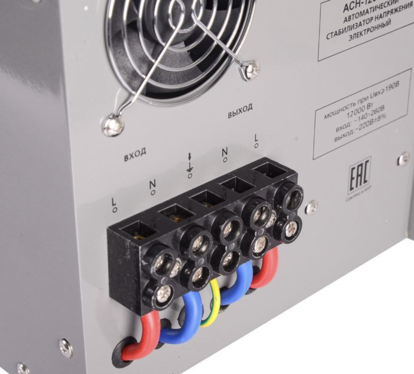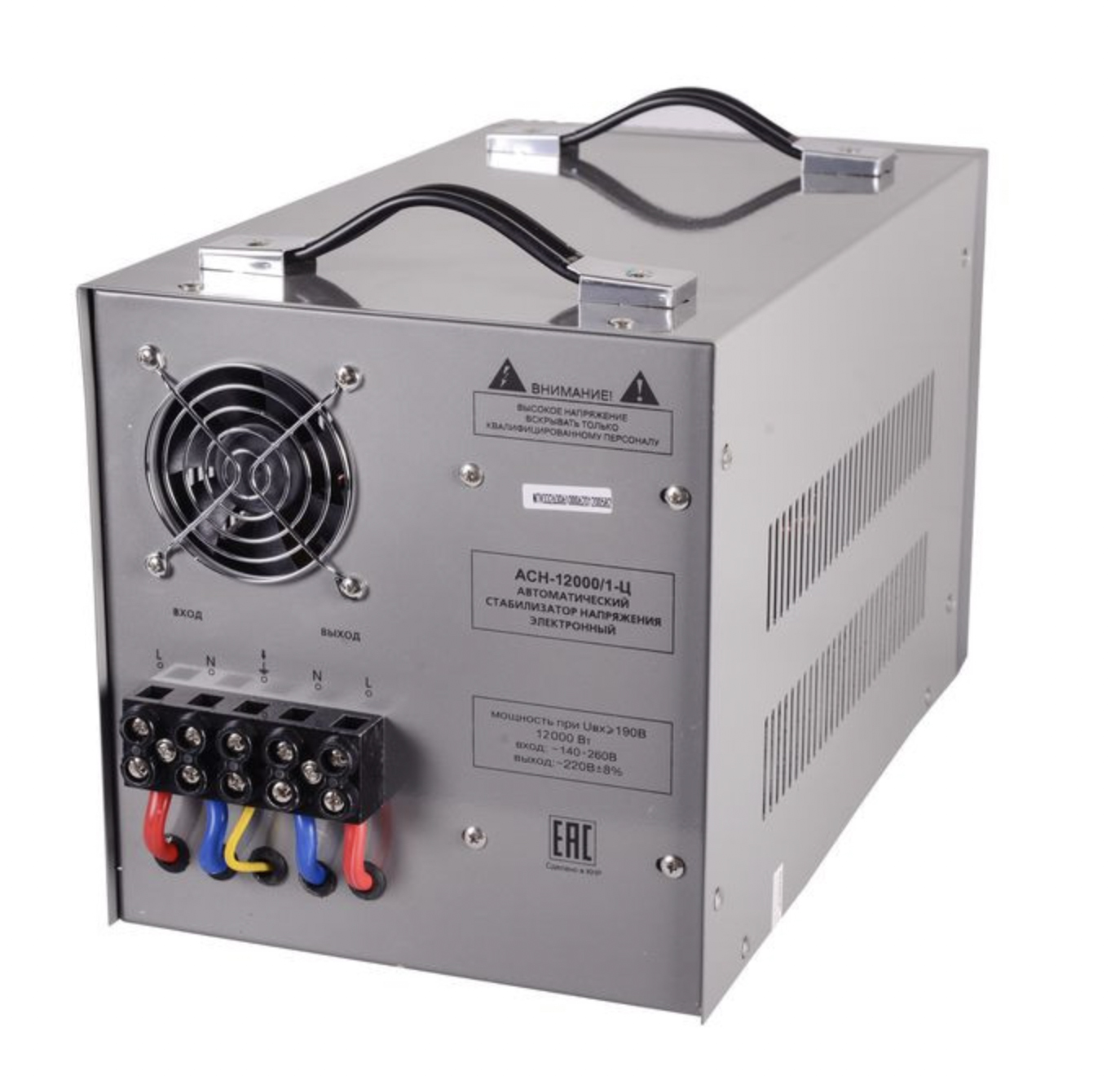 Стабилизатор релейного типа за счет своего принципа работы позволяет моментально реагировать даже на самые значительные и частые изменения напряжения в сети и предотвратить выход оборудования из строя. Номинальная мощность при входящем напряжении 190В составляет 12000Вт. Количество фаз = 1.