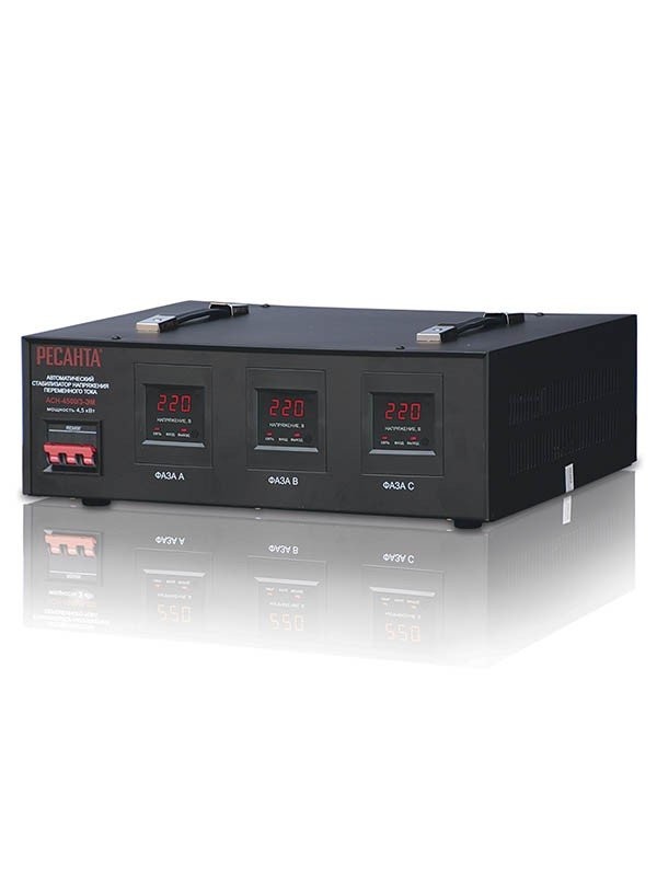 Работает с напряжением 380В с точностью до +/-2%. Устройство оснащено фильтрами сетевых помех, предотвращающими искажение частотной синусоиды, микропроцессорным управлением и дисплеем, отображающим параметры напряжения. Превышение пределов поддерживаемого входного напряжения автоматически отключает подачу питания. Прочный корпус защищает внутренние узлы аппарата от повреждений. Стабилизатор может обеспечивать стабильным питанием различные бытовые приборы.