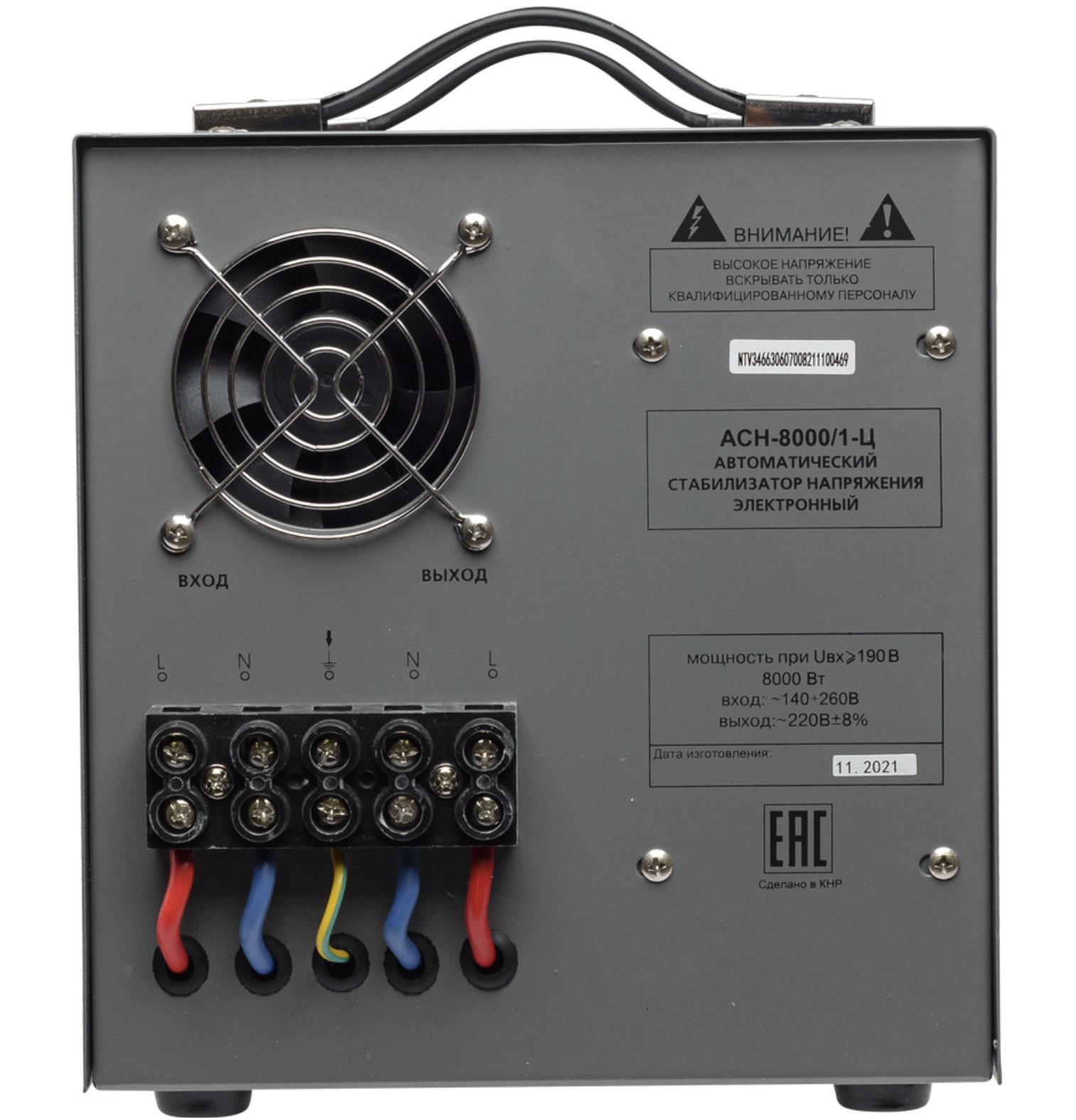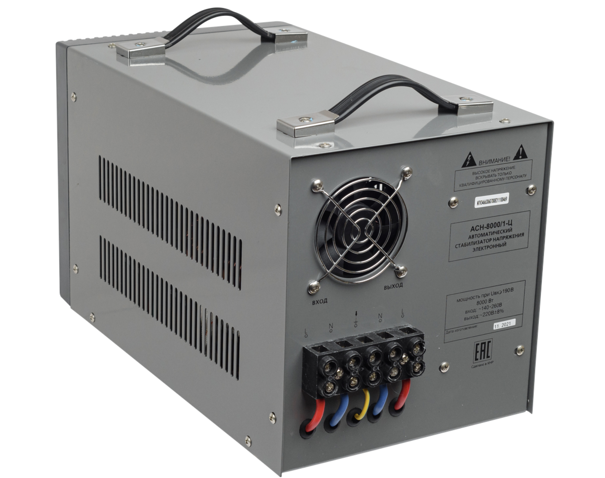 Стабилизатор релейного типа за счет своего принципа работы позволяет моментально реагировать даже на самые значительные и частые изменения напряжения в сети и предотвратить выход оборудования из строя. Номинальная мощность при входящем напряжении 190В составляет 8000Вт. Количество фаз = 1.