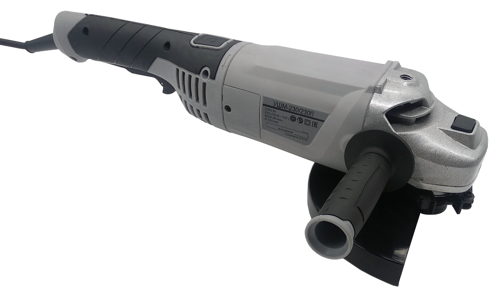Углошлифовальная машина Ресанта УШМ-230/2300 - предназначена для выполнения шлифовальных и отрезных работ по металлу и иным конструкционным и строительным материалам (кроме асбестосодержащих), без подачи воды, в производственных и бытовых условиях, с помощью шлифовального/отрезного круга. Машина может работать шлифовальным, полировальным или отрезным кругом, а также зачистным инструментом (металлическими/капроновыми чашечными и дисковыми щетками, лепестковыми шлифовальными головками и т.п. с рабочей скоростью не менее 80 м/с). Инструмент состоит из привода, представляющего собой коллекторный электродвигатель, размещенный в пластмассовом корпусе, и углового редуктора в корпусе из алюминиевого сплава. Рабочий инструмент крепится на резьбовом конце шпинделя.Характеристики Углошлифовальная машина УШМ-230/2300 Ресанта