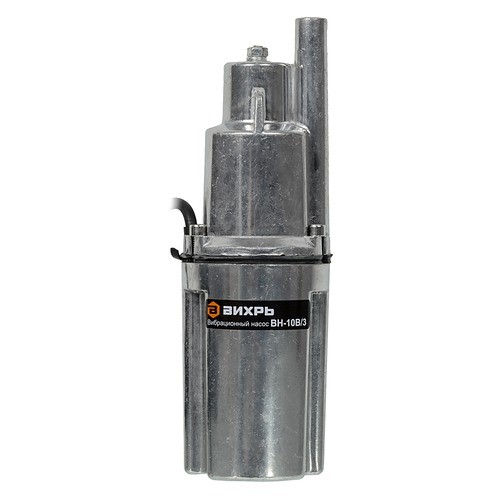 Вибрационный насос Вихрь ВН-10В/3 (новинка 2019 года) прост в использовании. Агрегат применяется для перекачивания воды из резервуаров и колодцев. Электрический двигатель мощностью 210 Вт дает напор до 72 метров и производительность до 16 л/мин. Разборные части крепко стянуты болтами. Насос требователен к качеству воды: вода должна быть чистая, без примесей и песка. Максимальная глубина погружения составляет 3 метра.